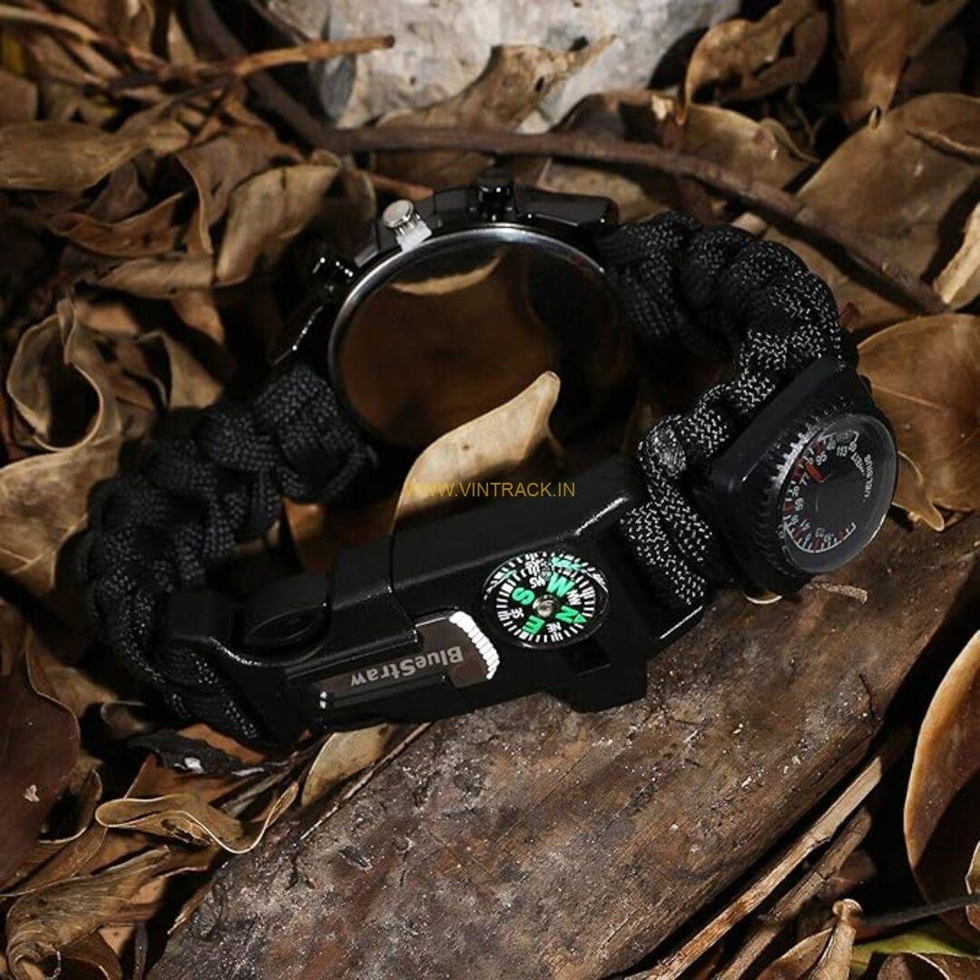 The 6-in-1 Survival Bracelet Watch is the ultimate outdoor accessory for both men and women. This versatile, all-in-one survival tool combines a compass, fire starter, whistle, LED light, paracord, and a functional watch in a sleek, compact design. Whether you’re hiking, camping, or preparing for an emergency, this bracelet watch provides everything you need to stay safe and prepared. Its rugged, durable design ensures that it can withstand harsh environments, making it a must-have for outdoor adventurers, preppers, or anyone who loves to explore.
