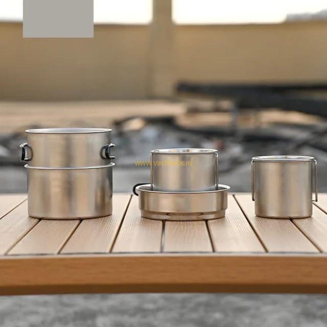 The Camping Cookware Mess Kit – 5-Piece Stainless Steel Set is a durable and portable outdoor cooking solution designed for camping, hiking, trekking, picnics, and travel adventures. Made from high-quality stainless steel, this mess kit includes 5 essential pieces for cooking and serving meals outdoors. Lightweight, easy to clean, and compact, it’s perfect for boiling, frying, and meal prep in the wilderness, making it an essential part of any camper’s gear.
