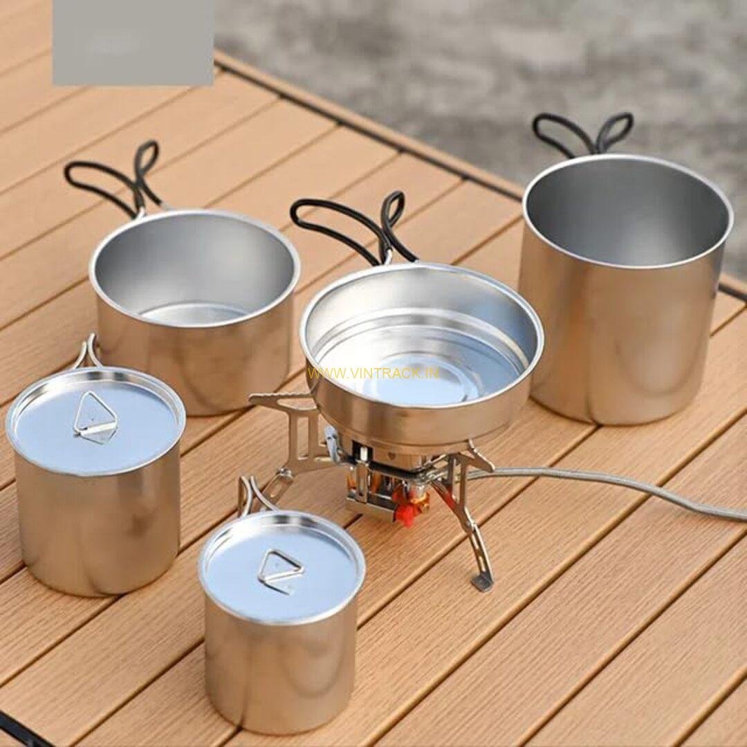 ✅ 5-Piece Cookware Set: Includes essential pots, pans, and utensils for outdoor cooking.