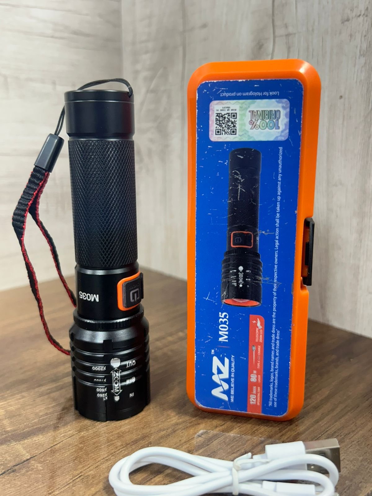 The MZ 035 is a high-performance, compact flashlight built for versatility, featuring a powerful dual-light source design for both focused and wide-area illumination.