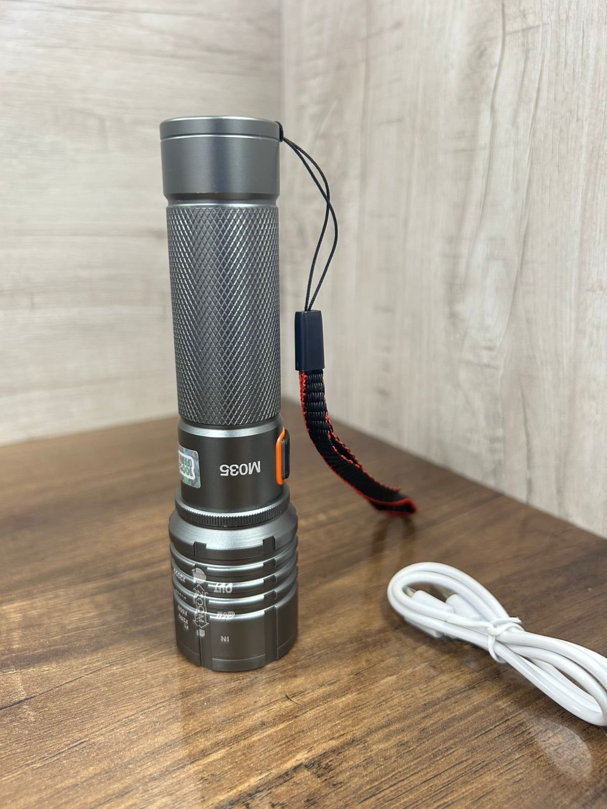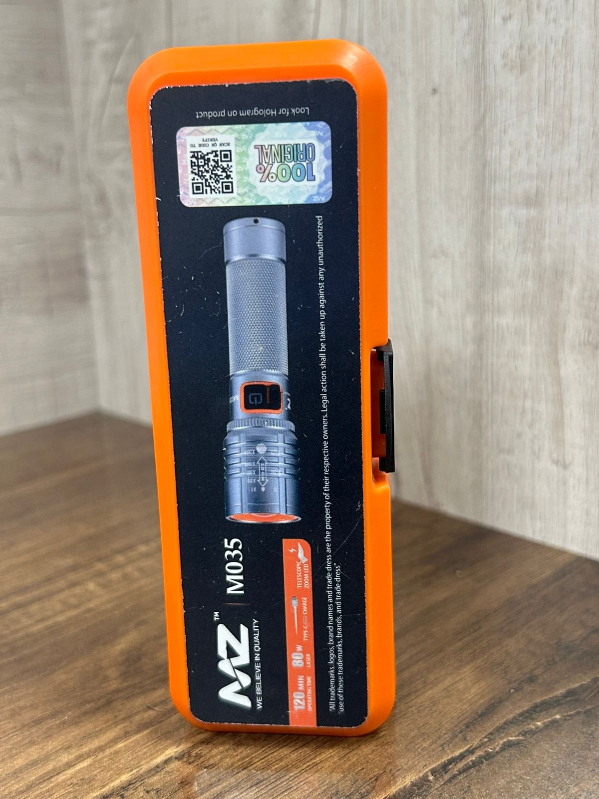 The MZ 035 is a high-performance, compact flashlight built for versatility, featuring a powerful dual-light source design for both focused and wide-area illumination.